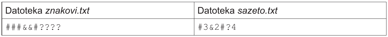 Koji će biti sadržaj datoteke sazeto.txt ako je ++?*****! !+++ sadržaj datoteke znakovi.txt?