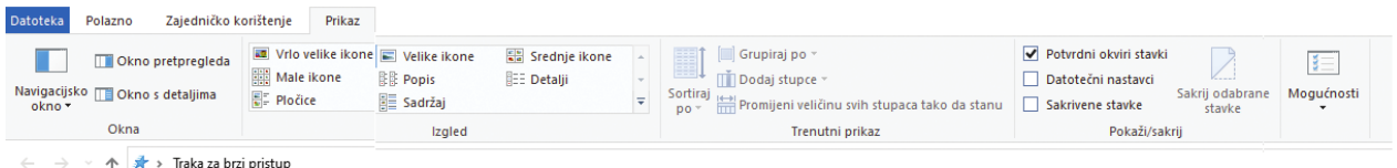 U programu za rad s mapama i datotekama Eksplorer za datoteke (File Explorer) formati datoteka su skriveni. Na slici zaokružite mjesto koje trebamo odabrati kako bi navedeni podatci bili vidljivi.