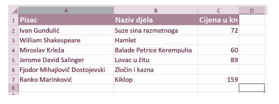 . Koja će vrijednost pisati u ćeliji