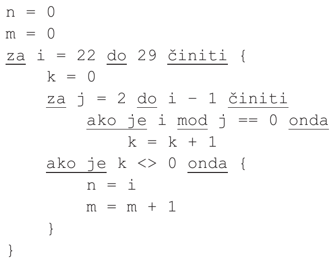 B. Kolika je vrijednost varijable m nakon izvođenja zadanoga dijela programa?