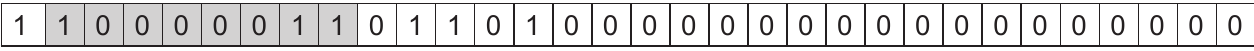 A. Koja je dekadska vrijednost eksponenta ako je karakteristika $\mathbf{1 0 0 0 0 0 1 1}_{\mathbf{2}}$ ?
