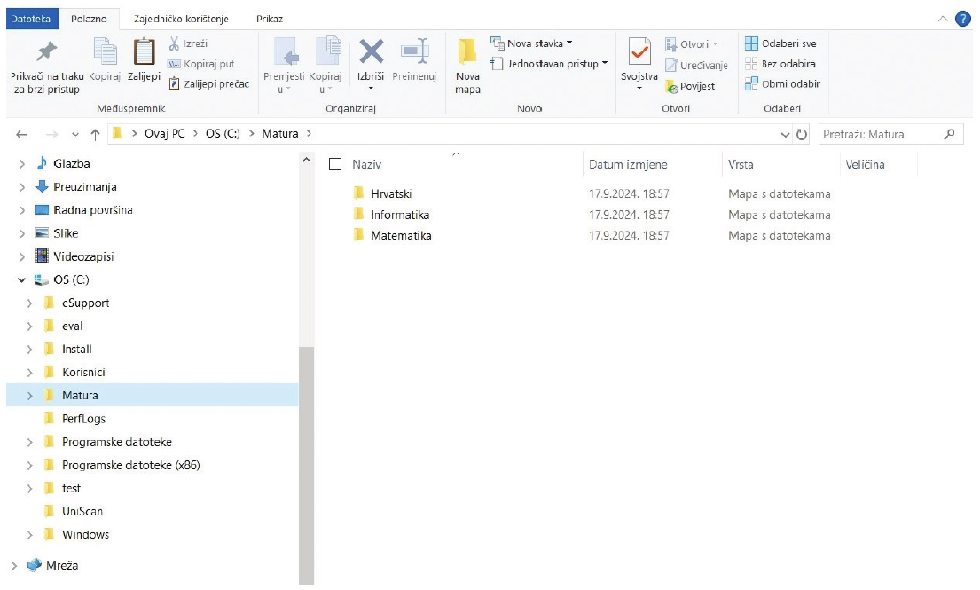 Na slici zaokružite ikonu koju treba odabrati za kreiranje mape Fizika u mapi Matura.