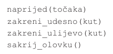 U odabranome programskom jeziku definiran je modul crtaj (nije ga potrebno pozivati).U modulu postoje sljedeće funkcije: