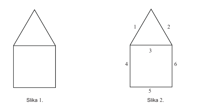 34.2. Napišite program koji će crtati kućicu kao na slici 1. koristeći se funkcijama zadanoga modula i naredbama odabranoga programskog jezika. Vrijednost duljine stranice a upisuje se s tipkovnice. Gornji lijevi kut kvadrata smješten je u središte ekrana, a linije se crtaju redom prema naznačenim brojevima, slika 2. Nakon crtanja olovka ne smije biti vidljiva.