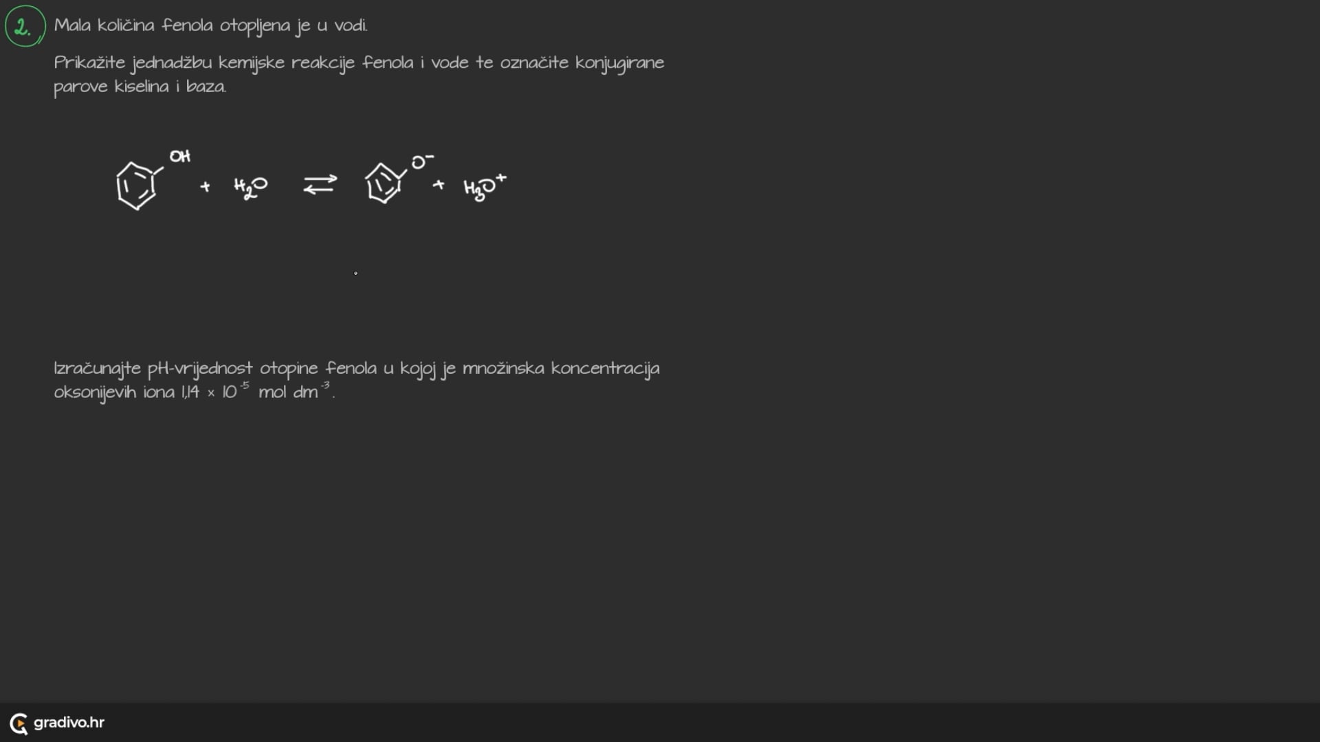 Izračunajte pH -vrijednost otopine fenola u kojoj je množinska koncentracija oksonijevih iona
