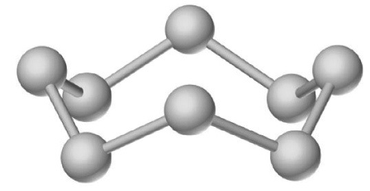 Na slici je prikazan model molekule tvari koja je pri sobnoj temperaturi netopljiva u vodi, koja je čvrsta i koja ima nisko talište i nisko vrelište. Kojemu tipu kristala pripadaju kristali te tvari?