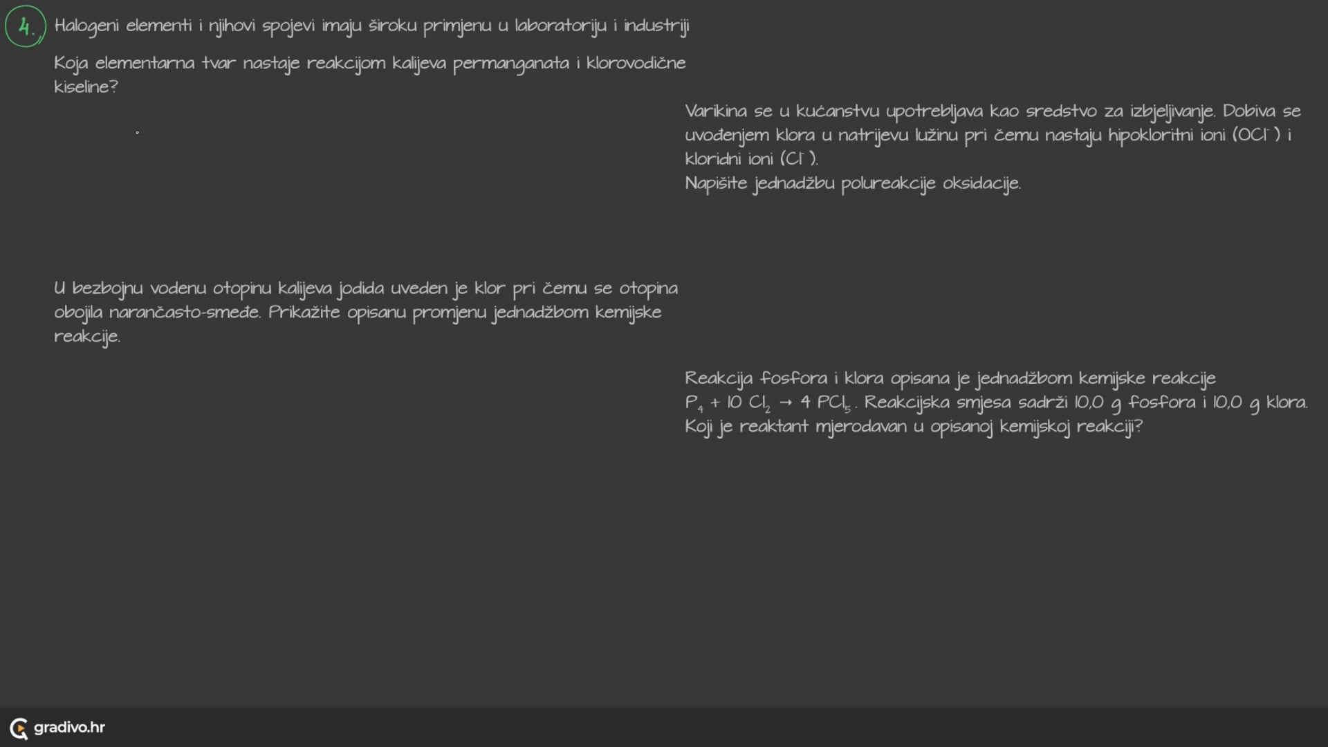 Koja elementarna tvar nastaje reakcijom kalijeva permanganata i klorovodične kiseline?