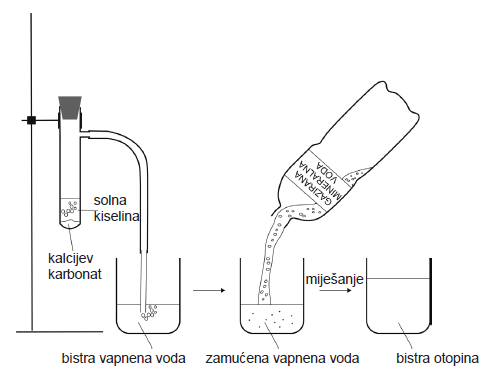 Koji spoj nastaje uvođenjem plina nastaloga tijekom opisanoga pokusa u bistru vapnenu vodu uslijed čega dolazi do zamućenja?