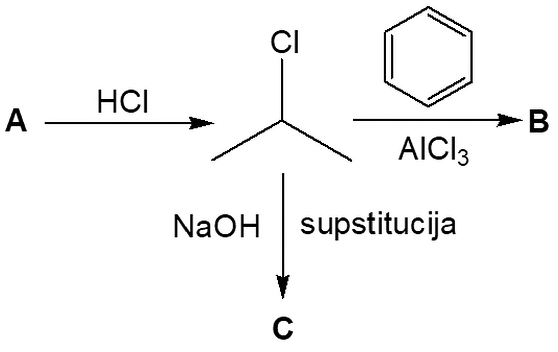 Pozorno promotrite reakcijsku shemu koja prikazuje nekoliko reakcija organskih spojeva.