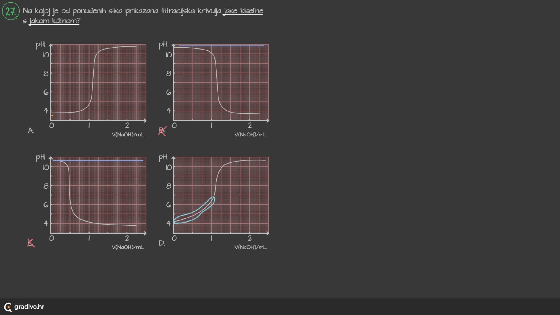 Na kojoj je od ponuđenih slika prikazana titracijska krivulja jake kiseline s jakom lužinom?
