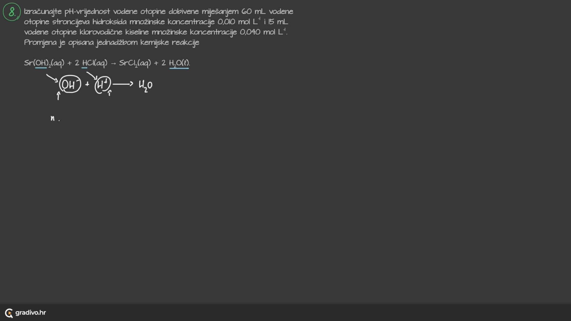 Izračunajte pH -vrijednost vodene otopine dobivene miješanjem 60 mL vodene otopine stroncijeva hidroksida množinske koncentracije