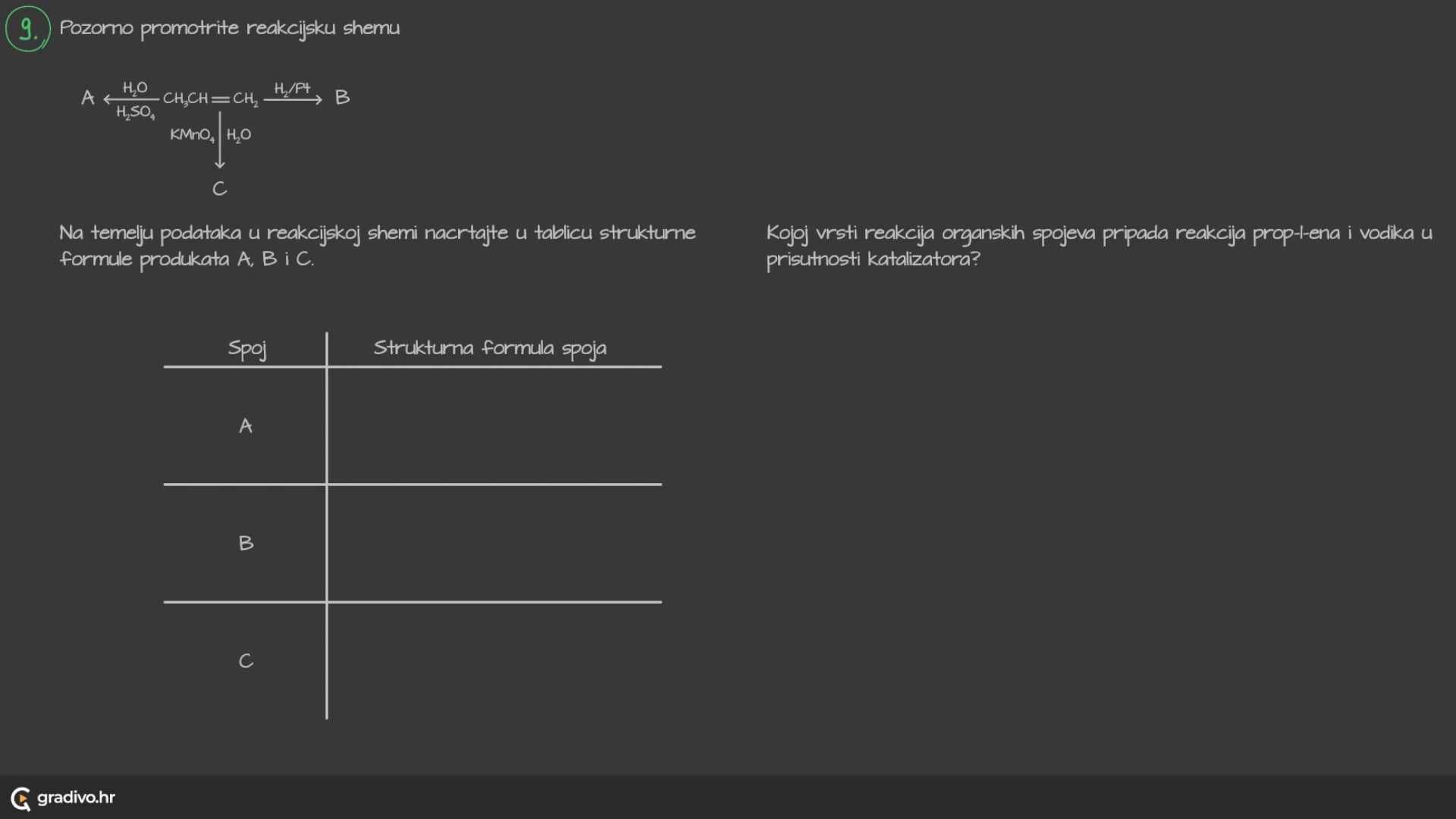 Na temelju podataka u reakcijskoj shemi nacrtajte u tablicu strukturne formule produkata