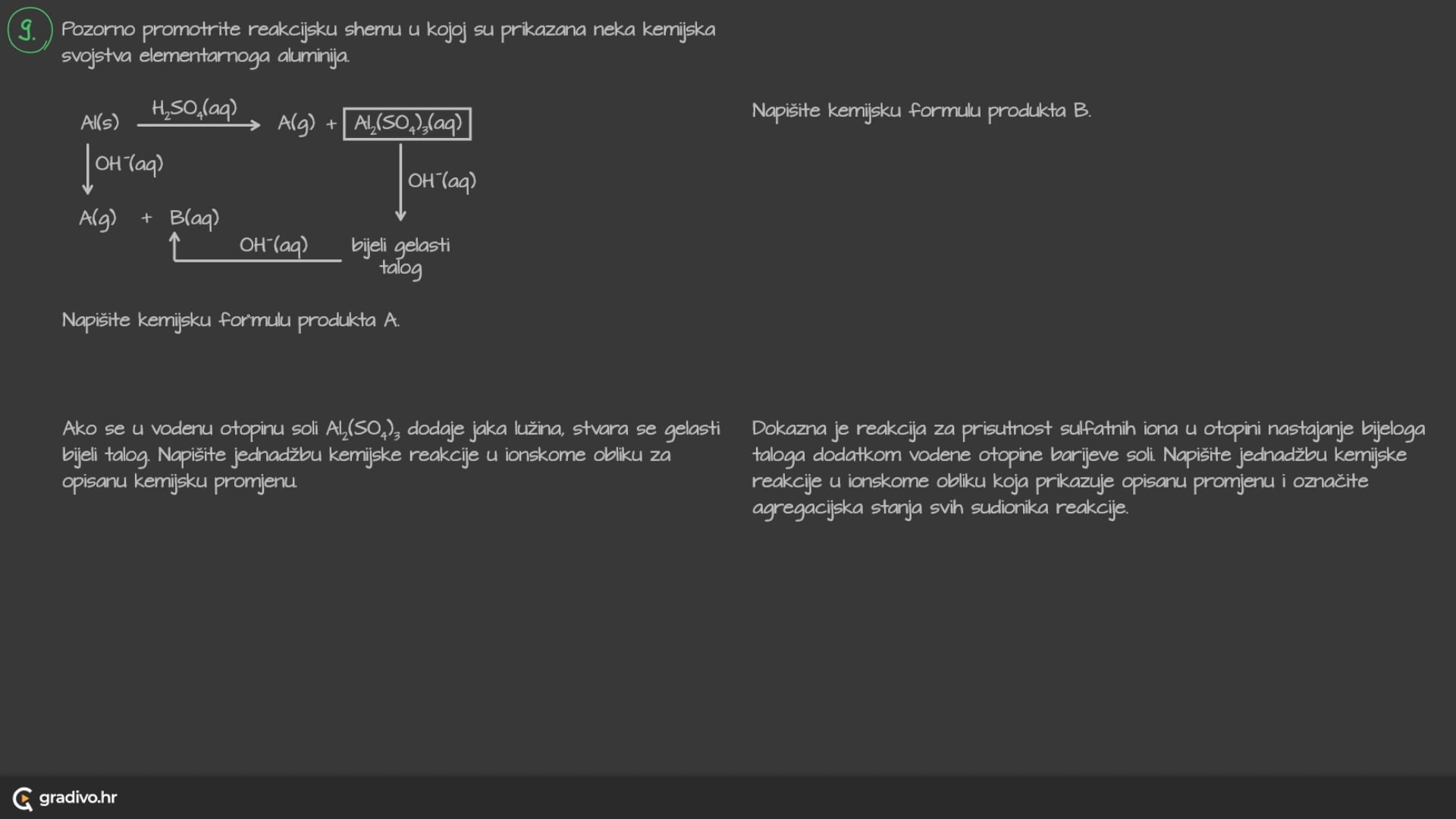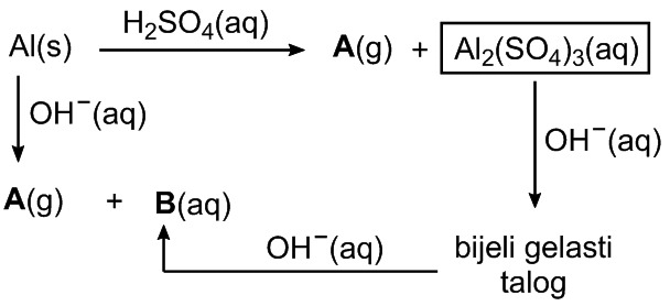 Pozorno promotrite reakcijsku shemu u kojoj su prikazana neka kemijska svojstva elementarnoga aluminija.