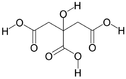Na slici je prikazana strukturna formula molekule limunske kiseline.