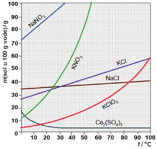 Dijagram prikazuje ovisnost topljivosti različitih soli o temperaturi.