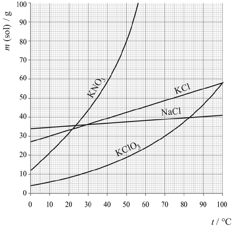 sol | $m$ (sol) / g | $t /{ }^{\circ} \mathrm{C}$ | nezasićena otopina | zasićena otopina | prezasićena otopina | |
