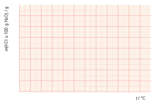 U tablici su zadani podatci ovisnosti topljivosti kalijeva klorida o temperaturi. Topljivost je izražena najvećom mogućom masom kalijeva klorida koja se može otopiti u 100 g vode.