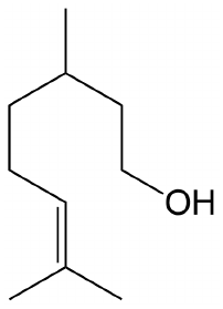 Strukturnom formulom prikazana je molekula alkohola citronelola koji se koristi u sredstvima za odbijanje komaraca.