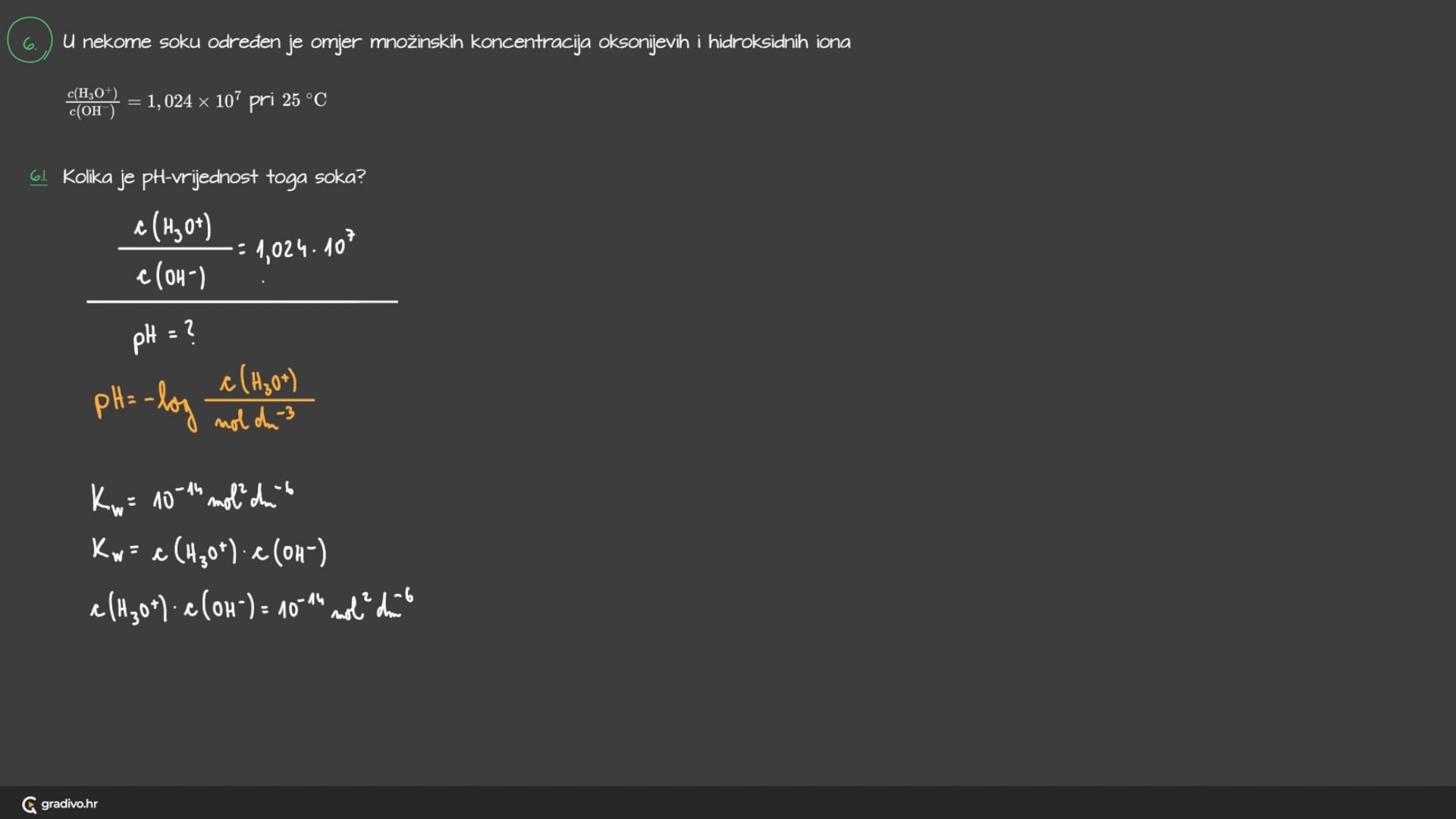 U nekome soku određen je omjer množinskih koncentracija oksonijevih i hidroksidnih iona