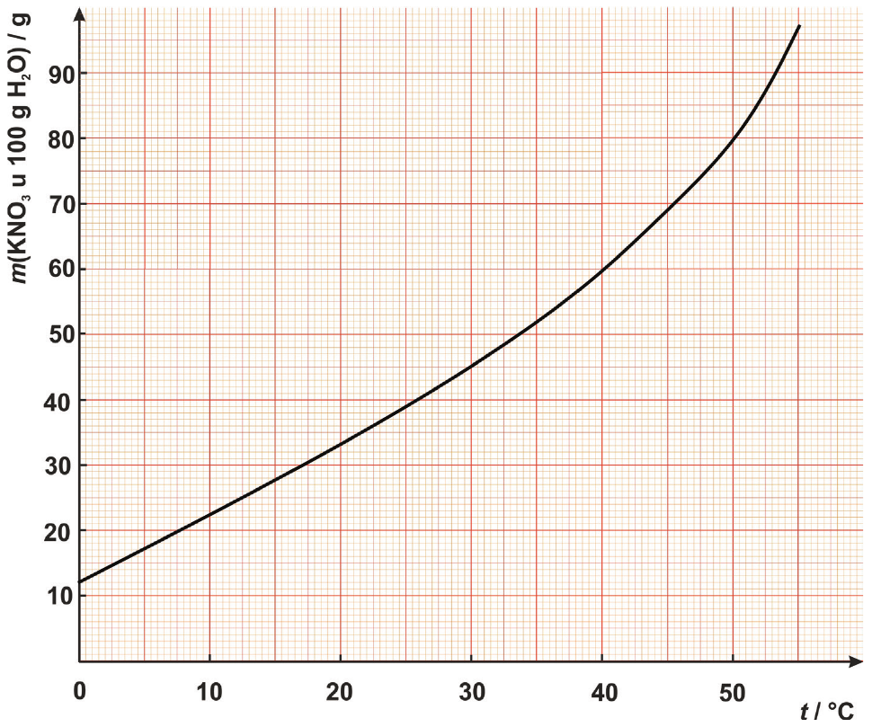 42. Graf prikazuje ovisnost topljivosti kalijeva nitrata u vodi o temperaturi.