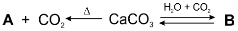 45.1. Napišite kemijski naziv tvari A koja nastaje žarenjem kalcijevoga karbonata.