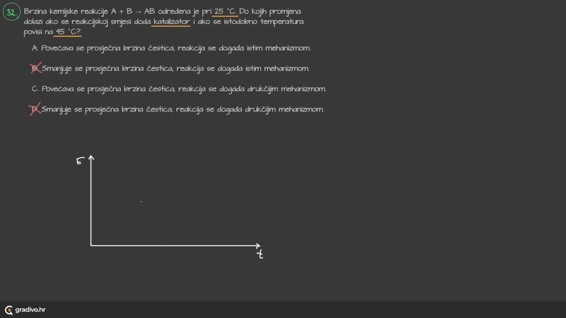 D. Smanjuje se prosječna brzina čestica, reakcija se događa drukčijim mehanizmom.