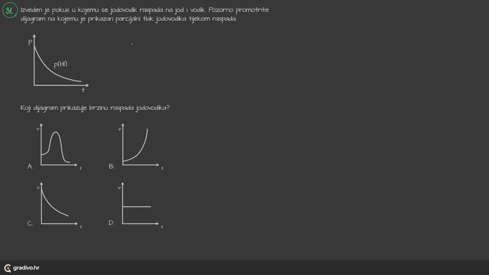 Koji dijagram prikazuje brzinu raspada jodovodika?