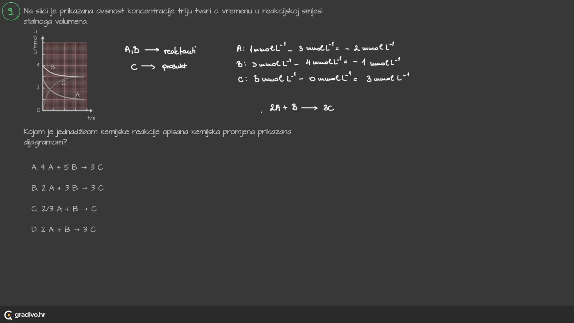 D. \(2 \mathrm{~A}+\mathrm{B} \rightarrow 3 \mathrm{~C}\)