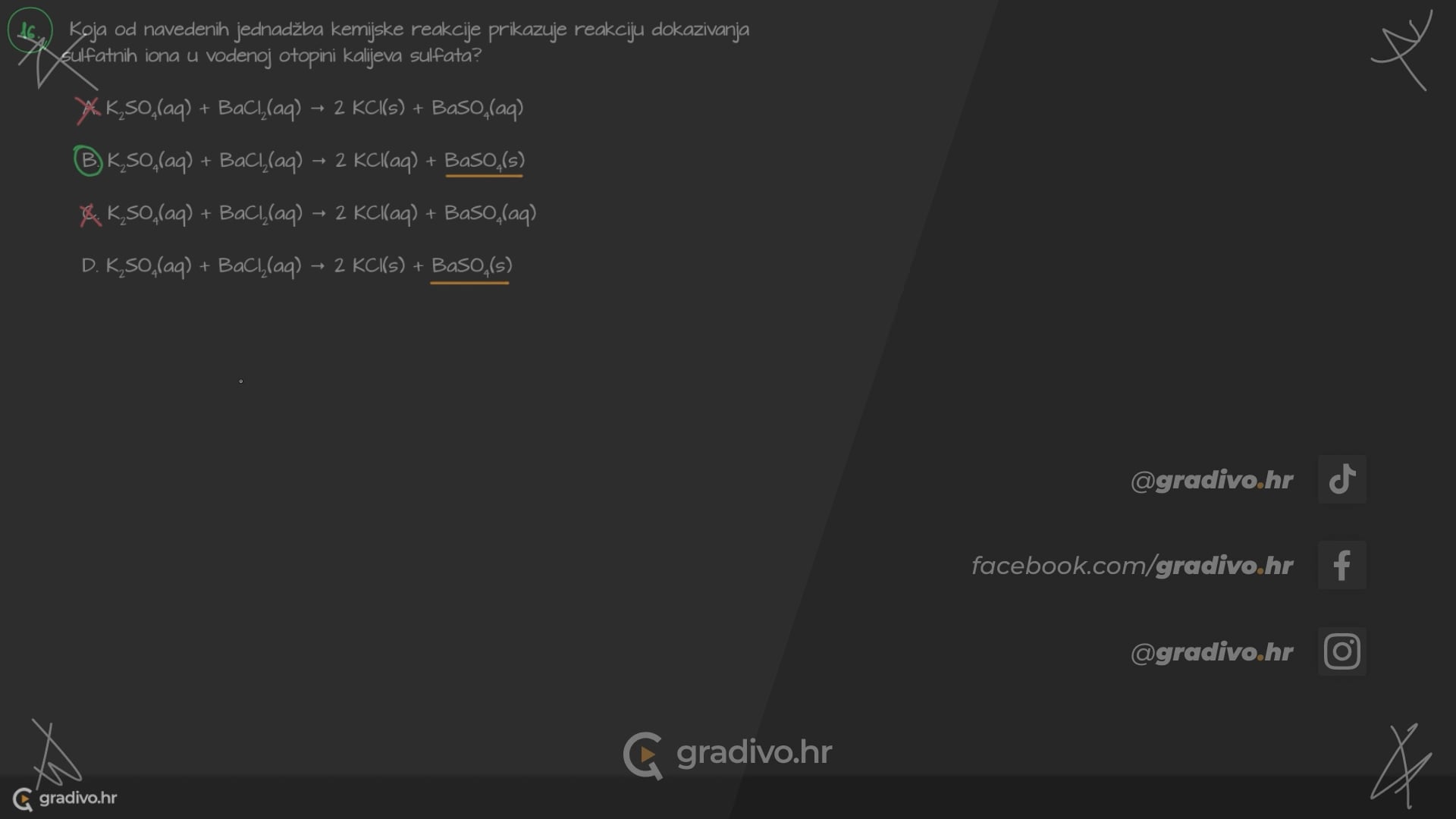 B. \(\mathrm{K}_{2} \mathrm{SO}_{4}(\mathrm{aq})+\mathrm{BaCl}_{2}(\mathrm{aq}) \rightarrow 2 \mathrm{~KCl}(\mathrm{aq})+\mathrm{BaSO}_{4}(\mathrm{s})\)