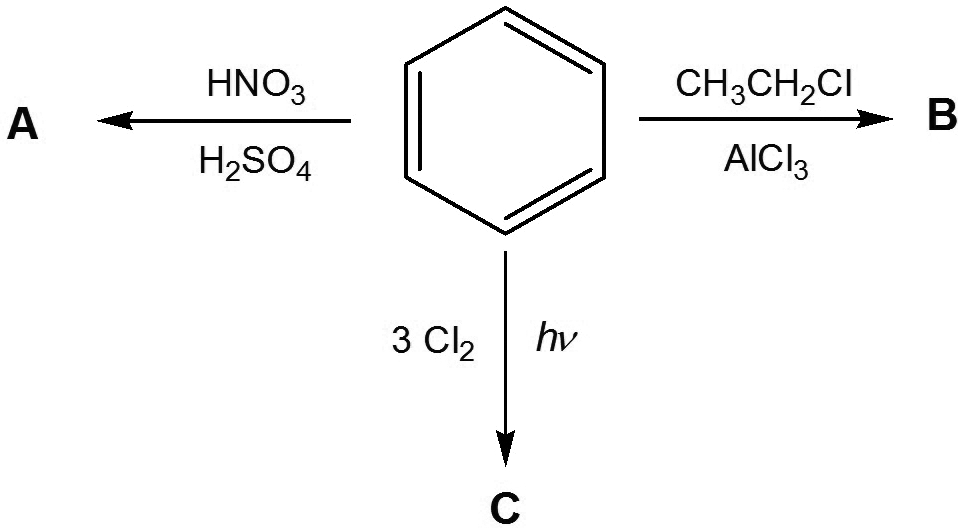 Na temelju podataka u reakcijskoj shemi nacrtajte u tablicu strukturne formule molekula produkata