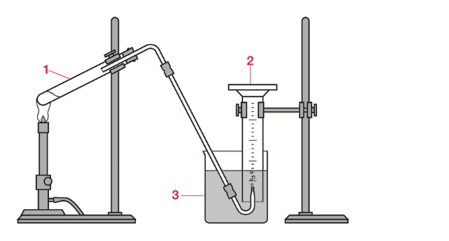 Imenujte stakleni kemijski pribor označen brojevima na slici, a upotrebljava se pri termičkoj razgradnji kalijeva klorata.