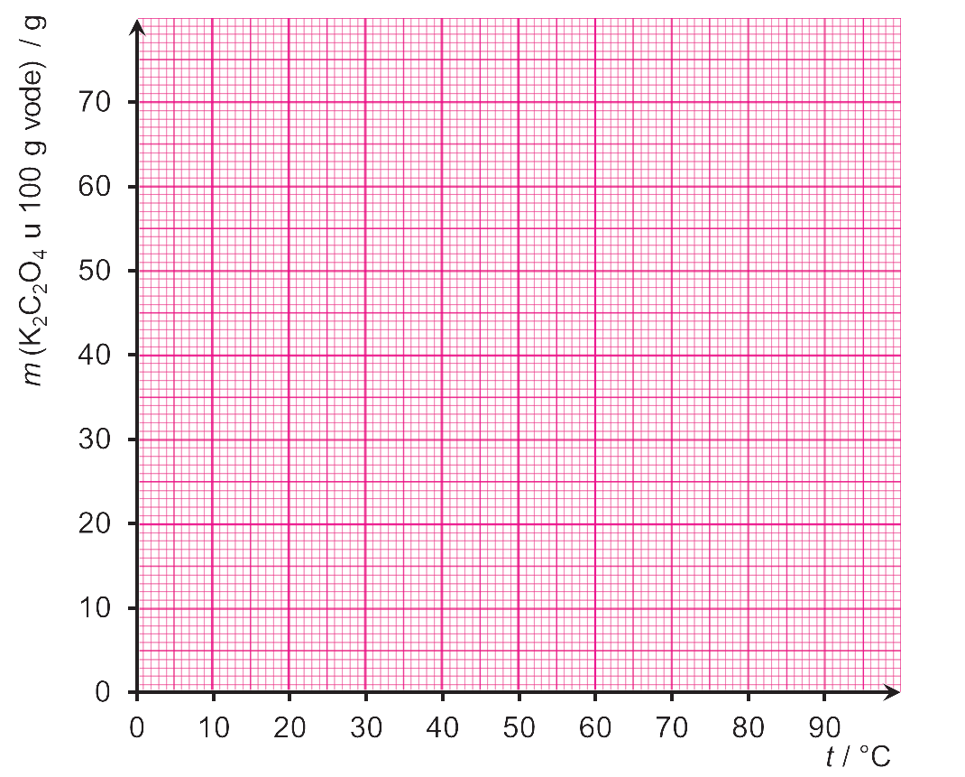Načinjen je pokus u kojemu je određena topljivost kalijeva oksalata u vodi pri određenim temperaturama. Rezultati mjerenja prikazani su u tablici.