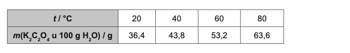4. Načinjen je pokus u kojemu je određena topljivost kalijeva oksalata u vodi pri određenim temperaturama. Rezultati mjerenja prikazani su u tablici.