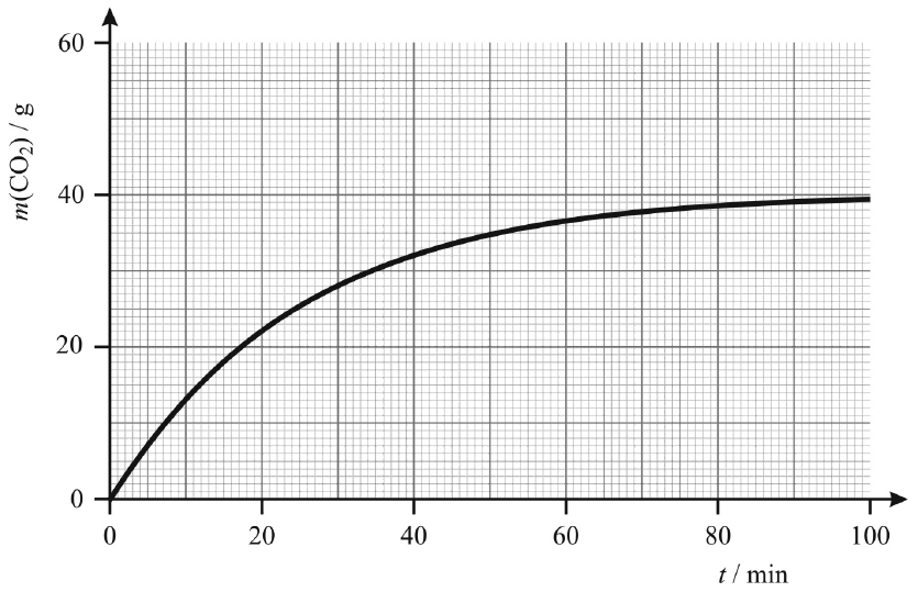 Termičkom razgradnjom kalcijeva karbonata nastaju ugljikov dioksid i kalcijev oksid. Graf prikazuje ovisnost mase razvijenoga ugljikova dioksida o vremenu žarenja.
