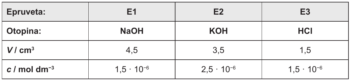 7.1. Pomiješa li se sadržaj svih triju epruveta, doći će do kemijske reakcije.Kolika će biti pH-vrijednost otopine nastale miješanjem cjelokupnoga sadržaja svih epruveta?