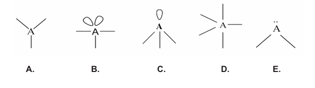 4.3. Upišite slovo koje je ispod slike koja odgovara prostornomu rasporedu atoma u molekuli $\mathrm{ClF}_3$.