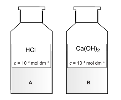 4.3. Izračunajte volumen vodene otopine kalcijeva hidroksida iz boce B potrebne za potpunu neutralizaciju 10 mL klorovodične kiseline iz boce A.