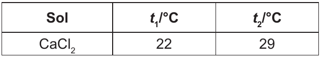 28. Izveden je pokus otapanja kalcijeva klorida u vodi. Izmjerene vrijednosti temperaturevode u reakcijskoj posudi prije dodatka kalcijeva klorida (t₁) i temperature otopineneposredno nakon dodatka kalcijeva klorida (t₂) navedene su u tablici.