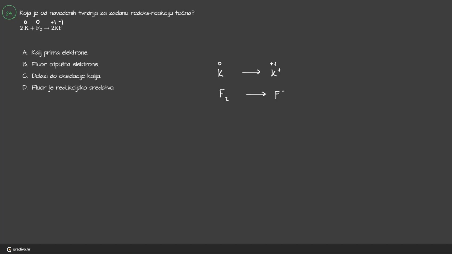 D. Fluor je redukcijsko sredstvo.