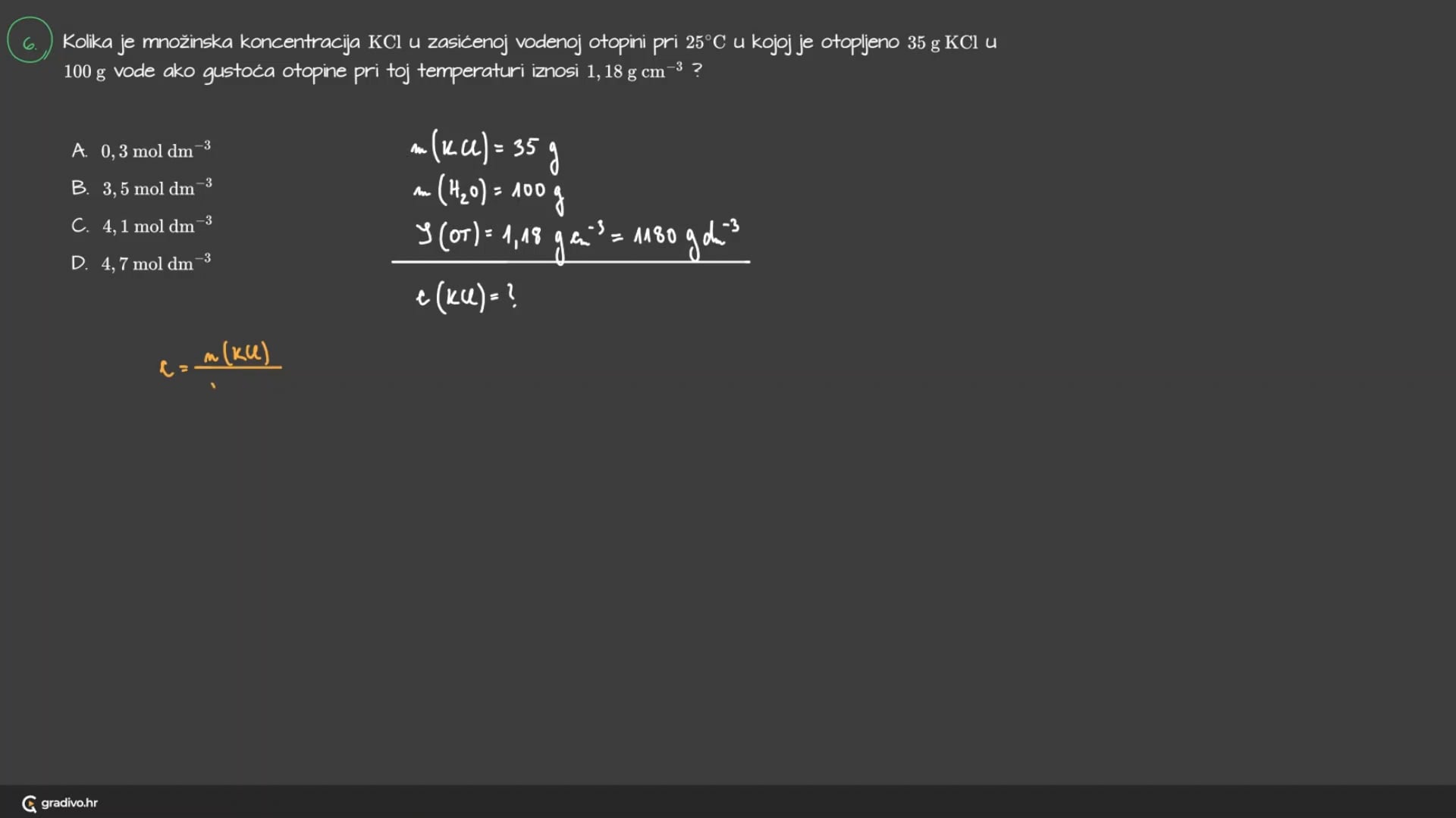 B. 3,5 mol dm−33,5 \mathrm{~mol} \mathrm{~dm}^{-3}3,5 mol dm−3