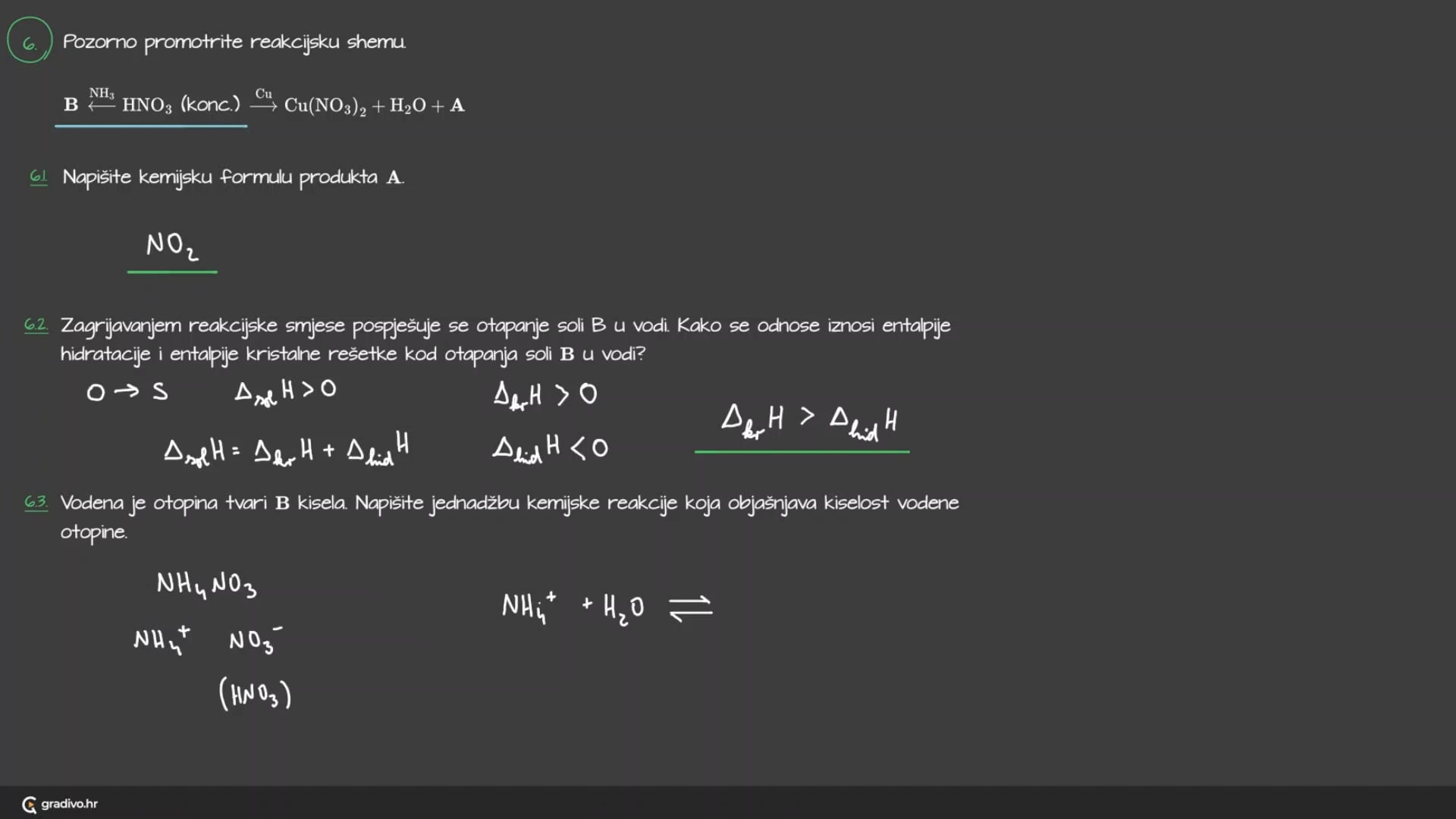 Zagrijavanjem reakcijske smjese pospješuje se otapanje soli B u vodi. Kako se odnose iznosi entalpije hidratacije i entalpije kristalne rešetke kod otapanja soli B u vodi?