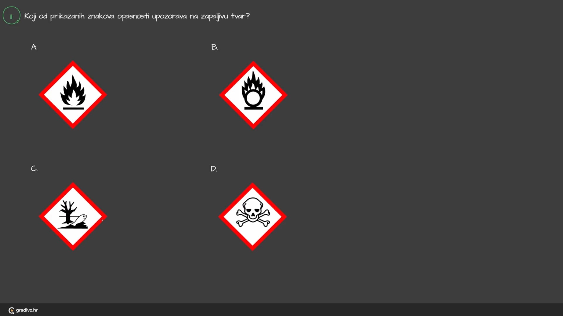 Koji od prikazanih znakova opasnosti upozorava na zapaljivu tvar?