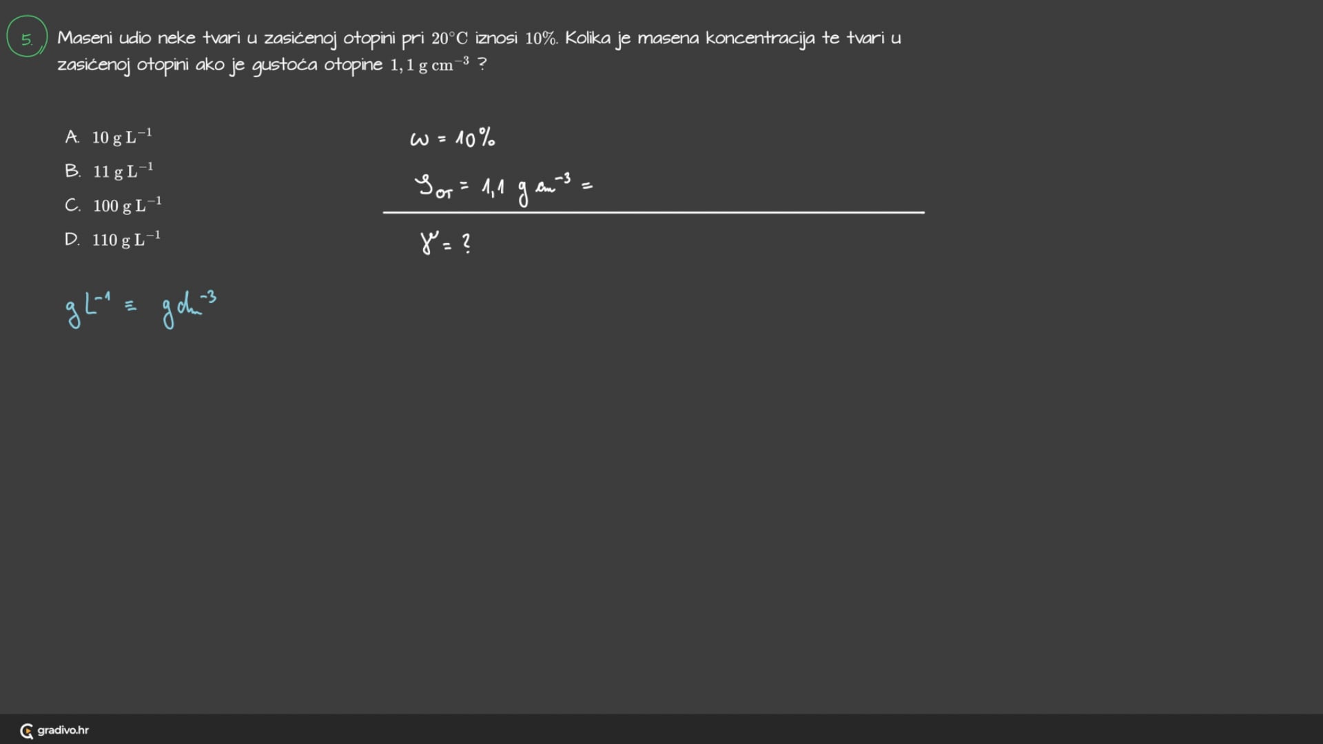 D. 110 g L−1110 \mathrm{~g} \mathrm{~L}^{-1}110 g L−1