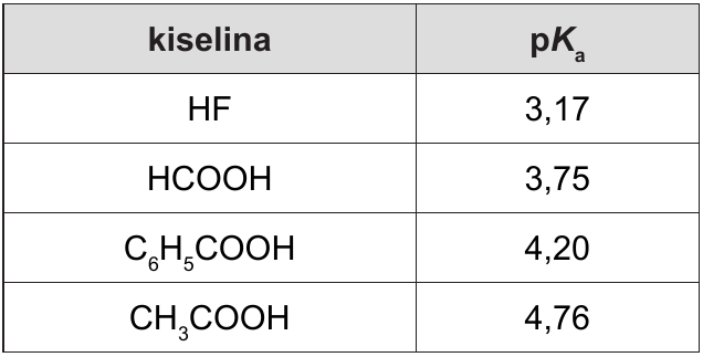 U tablici su navedene $\mathrm{p} K_{\mathrm{a}}$ vrijednosti četiriju kiselina pri $25^{\circ} \mathrm{C}$.