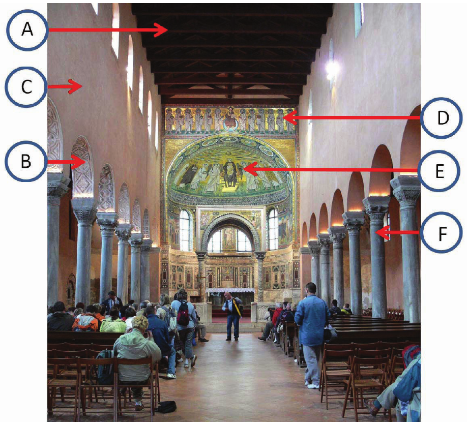 Elementima konstrukcija pridružite neka od slova (od A do F) kojima su ti elementi označeni na slici.