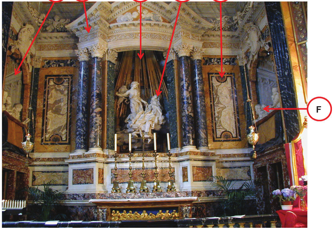 15. Elementima prikazanoga djela pridružite neka od slova (od A do F) kojima su ti elementi označeni na slici.