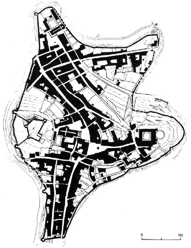 Svaki prikazani tlocrt urbanoga prostora povežite s odgovarajućim nazivom urbane cjeline.