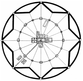 Svaki navedeni dio grada čiji je tlocrt prikazan poveżite s odgovarajućim urbanistic̈kim karakteristikama.
