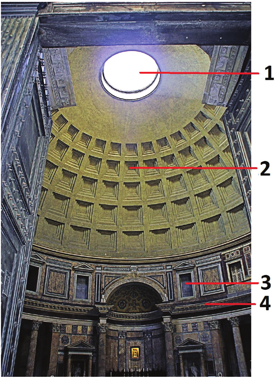 Pozorno promotrite prikazanu unutrašnjost građevine i svaki njezin dio označen brojevima od 1 do 4 povežite s odgovarajućim nazivom.