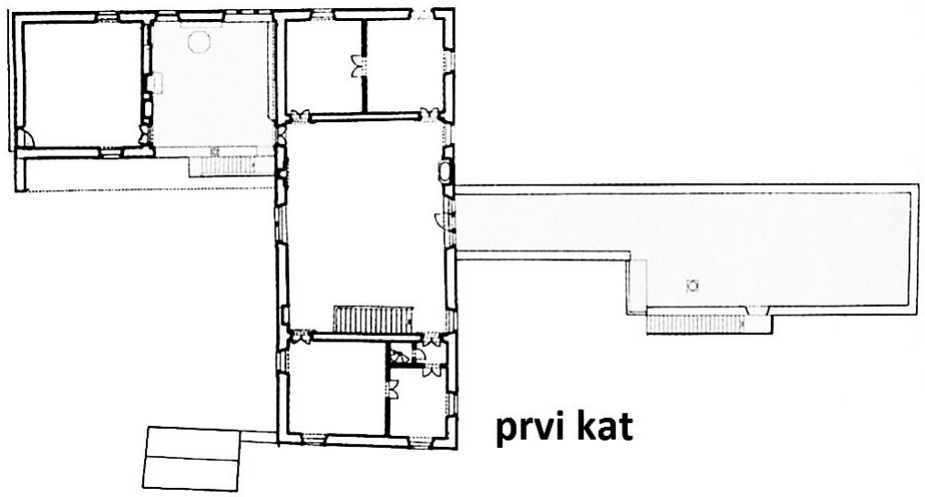 Na tlocrtu prvoga kata prikazane građevine označite granice prostora lođe.